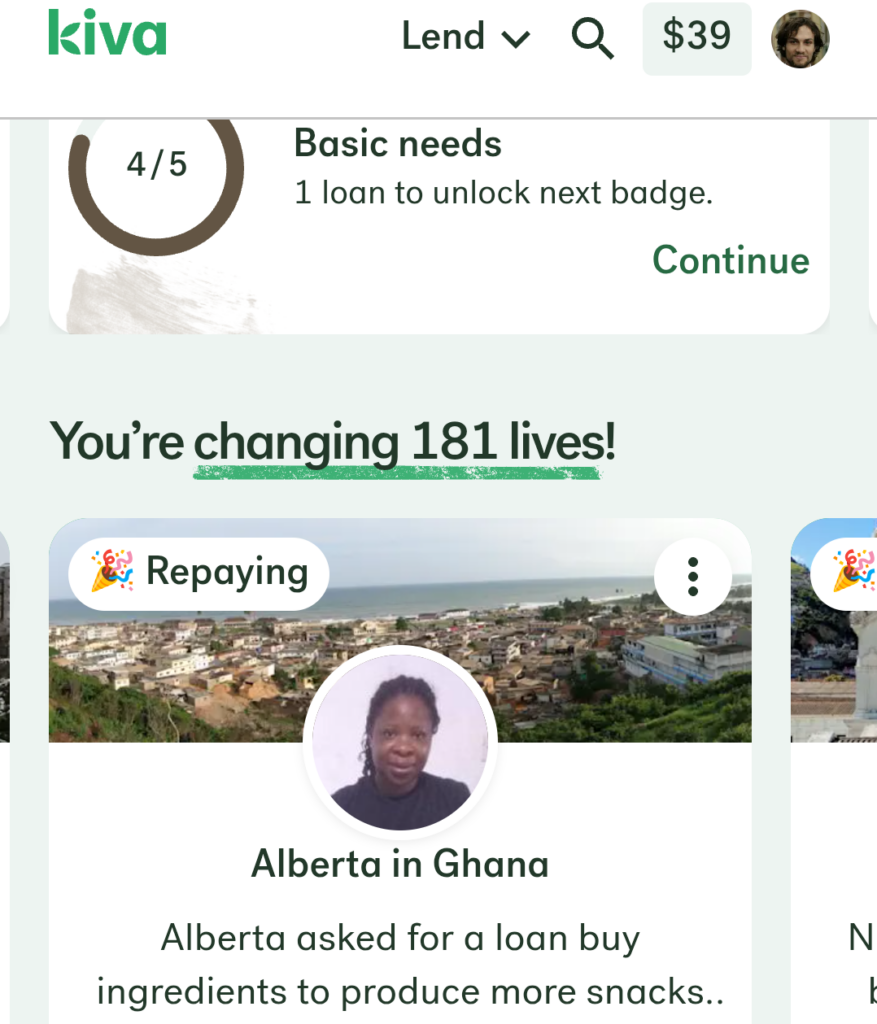 Ich bin Sozialpädagoge. Ich arbeite täglich mit Menschen in schwierigen Verhältnissen. Und ich glaube, dass strukturelle Armut nicht durch Almosen gelöst wird, sondern durch Zugang zu Ressourcen – Bildung, Infrastruktur, Kapital. Kiva ist kein Allheilmittel. Mikrofinanzierung ist kein Ersatz für gerechte Weltwirtschaftsstrukturen. Aber es ist ein konkreter, direkter Weg um jemandem Zugang zu etwas zu verschaffen das er sonst nicht hätte.